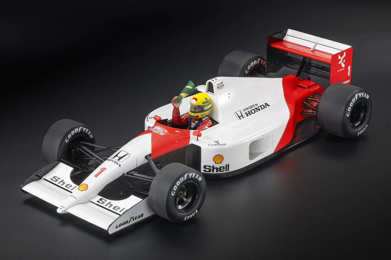 The legendary 1991 Brazilian Grand Prix–winning car driven by Ayrton Senna is recreated in exceptional 1:12 scale by GP Replicas. This museum-quality resin model captures Senna’s iconic home victory at Interlagos—one of the most emotional and celebrated moments in Formula 1 history. As a result, it stands as a centerpiece worthy of the most serious motorsport collections.